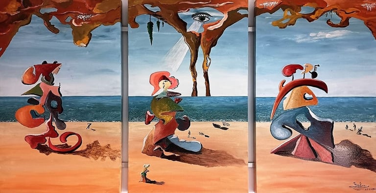 Mi universo creativo bebe del surrealismo, ese territorio donde el inconsciente se expresa libremente y lo simbólico cobra cuerpo. Entre todas las referencias, Salvador Dalí ha sido una fuente constante de inspiración: su manera de transformar lo invisible en imagen, de mezclar belleza y extrañeza, razón y sueño, ha marcado mi forma de mirar y de crear.